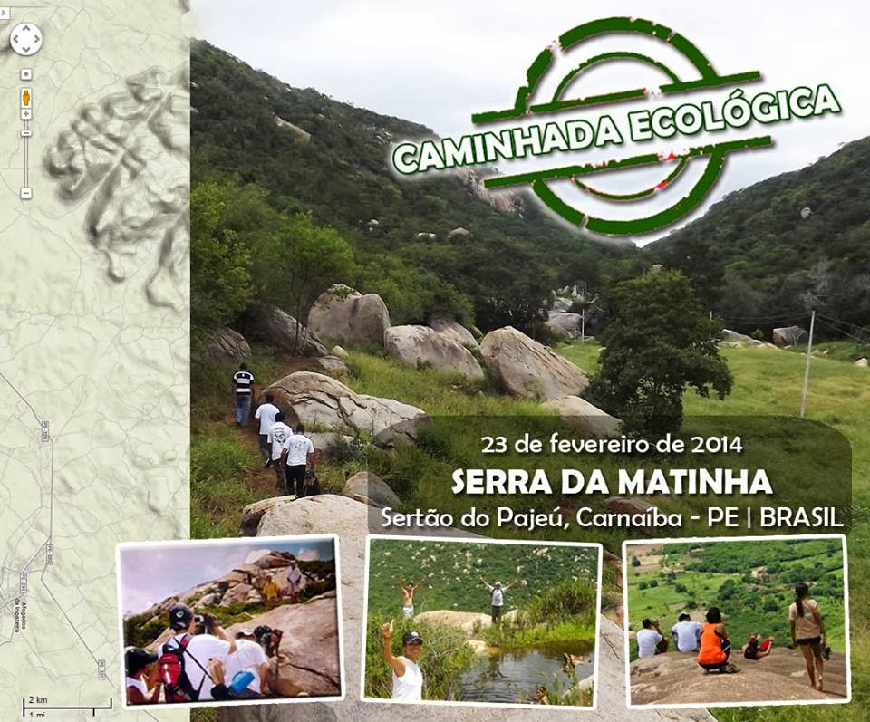 Caminhada – No próximo dia 23 de fevereiro A Diaconia, está realizando A 1ª Caminhada Ecológica na Serra da Matinha, no município de Carnaíba, Sertão do Pajeú (PE). O objetivo da caminhada será o de conscientizar as pessoas sobre a importância da preservação das riquezas naturais do nosso Sertão do Pajeú, em especial nessa edição, a riqueza da fauna e flora e do potencial hídrico que aquela região possui.
