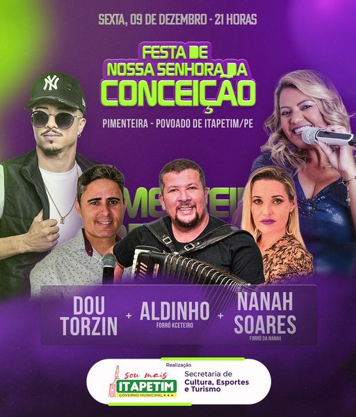 O Governo Municipal de Itapetim, através da Secretaria de Cultura, Esportes e Turismo, vai realizar a primeira festa de Nossa Senhora da Conceição no Povoado de Pimenteira do Ouro.