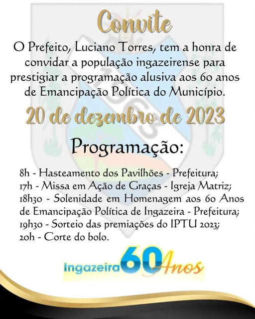 Comemorando emancipação – As cidades de Ingazeira e Iguaracy, estão comemorando nesta quarta-feira 20 de dezembro, seus 60 anos de amenacipação politica.