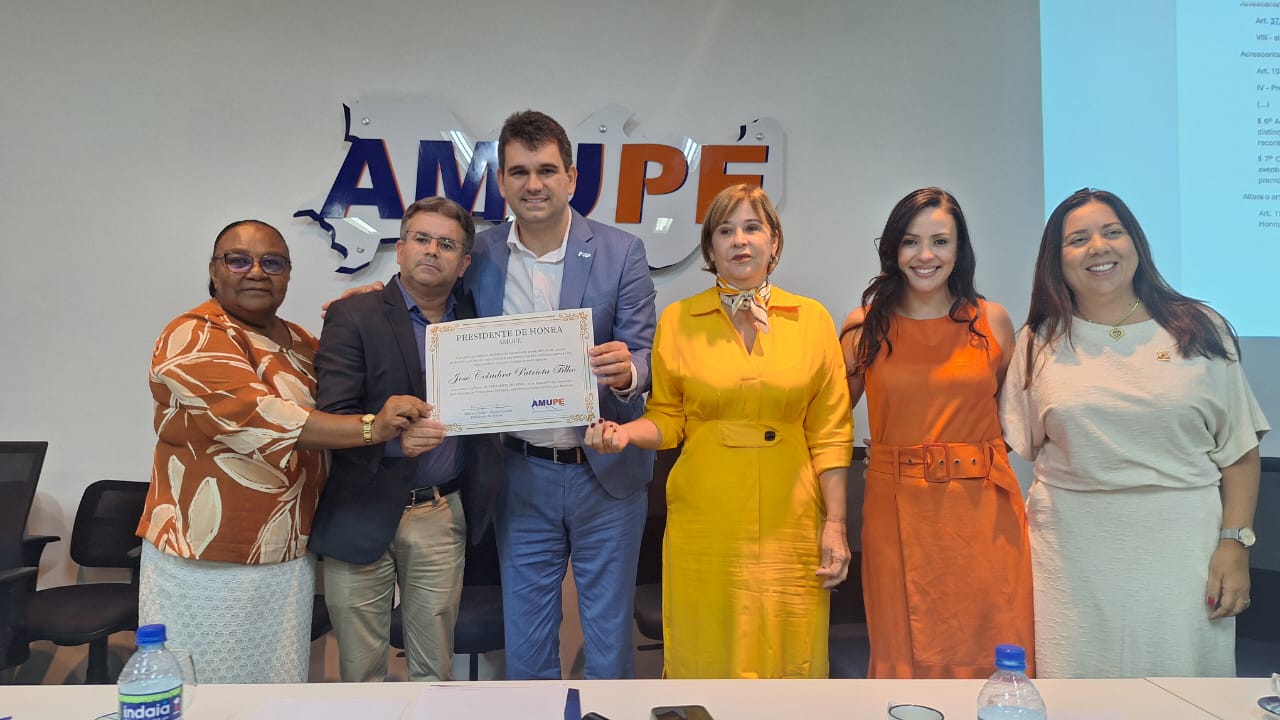 O presidente da Amupe, Marcelo Gouveia, acabou de homenagear com o Título de Presidente de Honra da Associação Municipalista de Pernambuco, o deputado estadual José Patriota.