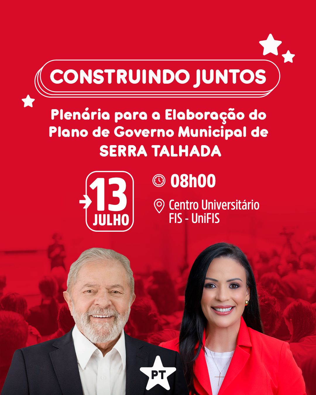 Plenária – O Partido dos Trabalhadores (PT) de Serra Talhada realiza no próximo sábado (13), a partir das 8 horas, na Faculdade de Integração do Sertão (FIS),  a plenária, intitulada “Construindo Juntos”, para elaboração do Plano de Governo Municipal.  A plenária tem como objetivo principal envolver a comunidade na construção colaborativa do nosso Plano de Governo Municipal. “Queremos ouvir as vozes dos cidadãos, entender suas necessidades e trabalhar juntos para criar um futuro próspero e inclusivo para Serra Talhada”, disse a prefeita Márcia Conrado.