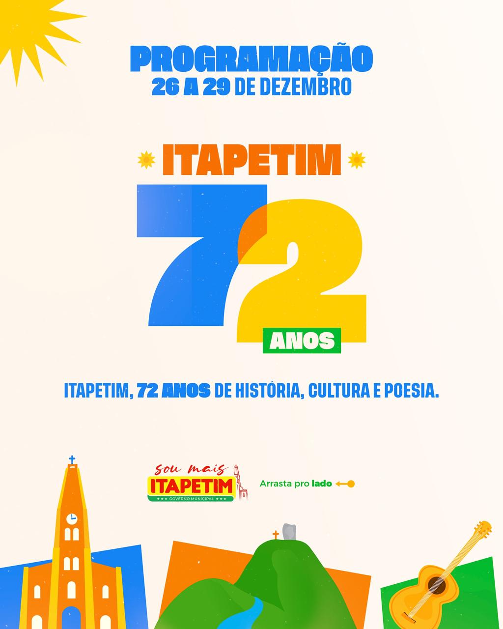 O município de Itapetim completa, no próximo dia 29 de dezembro, 72 anos de emancipação política. Para marcar a data, o Governo Municipal preparou uma programação comemorativa, que acontece de 26 a 29/12.