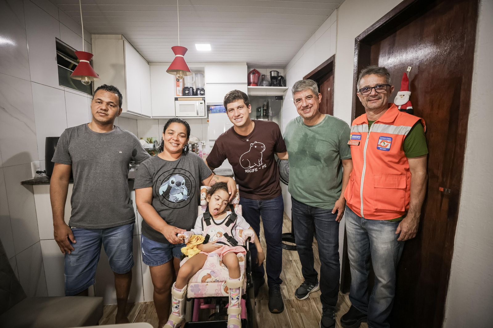 O prefeito João Campos esteve neste sábado (10) no bairro de Água Fria para assinar a ordem de serviço que autoriza as intervenções na residência de Maria Júlia Furtuoso, de 4 anos, diagnosticada com paralisia cerebral. A ação, realizada por meio do Programa Casa Sem Barreiras, através da Defesa Civil do Recife, vai promover adaptações no imóvel, garantindo mais acessibilidade, segurança e autonomia para a criança e sua família.