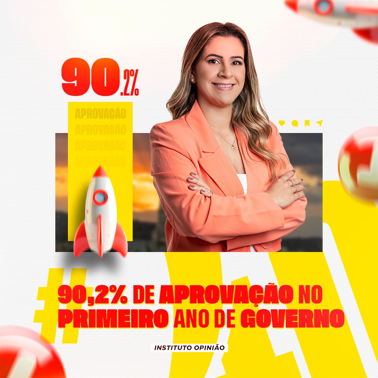 De acordo com o levantamento, 90,2% dos entrevistados afirmaram aprovar a administração da prefeita, enquanto apenas 5,5% declararam desaprovar. Outros 4,3% disseram não saber ou preferiram não responder.