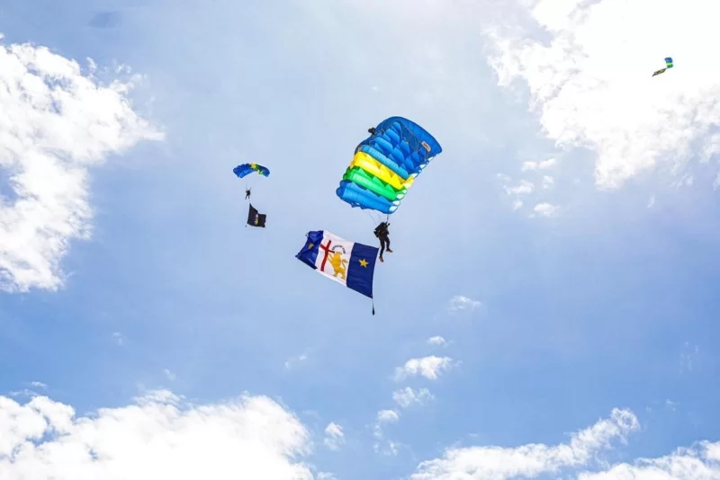 Durante a demonstração técnica, os militares realizaram manobras de precisão e conduziram as bandeiras do Recife e do estado de Pernambuco em pleno voo, em um gesto simbólico de valorização da história, do civismo e da identidade local. Os saltos ocorreram a cerca de 6 mil pés de altitude (aproximadamente 1.800 metros).