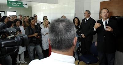 Após percorrer as novas instalações, Eduardo lembrou que o hospital,referência em tratamento do câncer, está sob intervenção do Governo de Pernambuco desde abril de 2007, o que significou uma “virada de página” para a instituição. “Quando tomamos para nós a responsabilidade de gerir o Hospital do Câncer, ele estava praticamente fechando, com salários atrasados, enfermarias fechadas e faltando equipamentos, médicos e medicamentos. Agora, temos um hospital que passou a ser referência de oncologia do país”, comemorou.