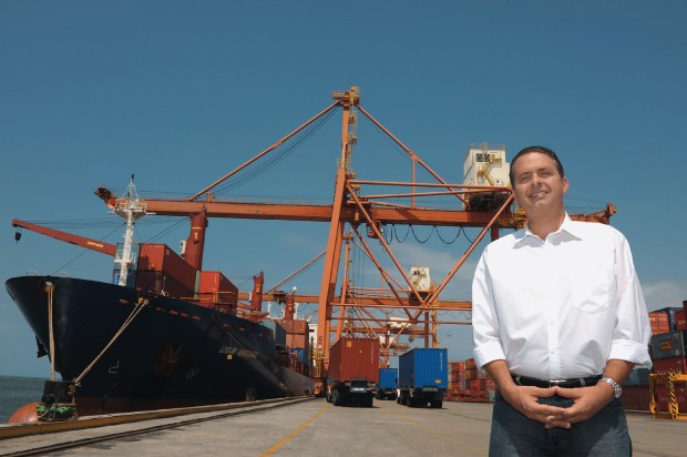 O governador Eduardo Campos no Porto de Suape. “Quem é amigo da Dilma, amigo do Brasil, não botará campanha na rua”