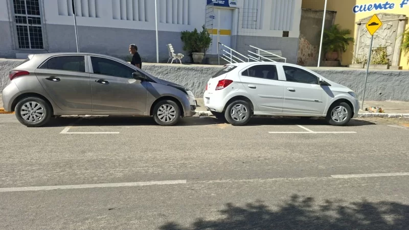 O trânsito de Afogados da Ingazeira é uma novela sem fim. Estou agora na Lanchonete de Edna, atrás da Prefeitura local, e registrei como álguns motoristas estacionam seus veículos, o da frente usou a faixa totalmente errada e o de trás avançou a faixa amarelo.