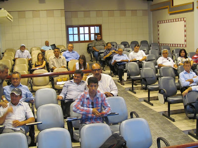 O primeiro tema que está em discussão na reunião CIMPAJEÚ, é o Plano de Gerenciamento Regional de Resíduos Sólidos,os engenheiros ambientais Fernando Monteiro e Leonardo Malta, do Instituto Tecnológico de Pernambuco (ITEP) estão discutindo com os prefeitos presentes. A reunião conta agora com 12 prefeitos, acabou de chegar ao auditório o Prefeito de Tuparetama Dêva Pessoa.