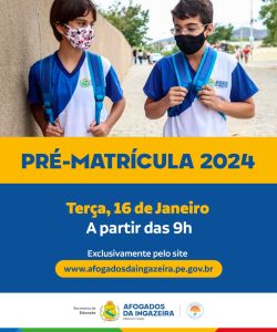 Prefeitura de Afogados da Ingazeira inicia pré-matrícula — A Prefeitura de Afogados da Ingazeira iniciou, nesta terça-feira (16), o processo de pré-matrícula para a rede municipal de ensino. Os interessados devem acessar o site oficial da Prefeitura (
