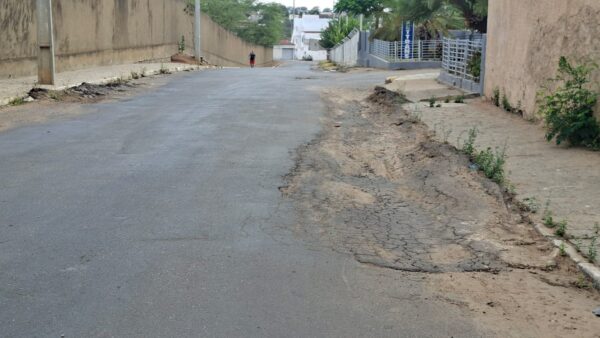 Situação precária – Pasmem! Esta é a situação do asfalto da entrada da Secretaria Municipal de Transporte de Afogados da Ingazeira e a garagem da frota da Prefeitura Municipal de Afogados da Ingazeira. Foto: Finfa