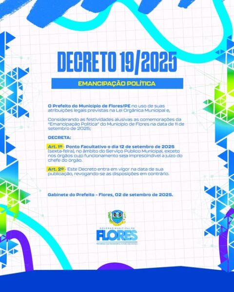 Concurso – A Prefeitura de Flores, no Sertão pernambucano, divulgou o Edital nº 001/2025, que regulamenta o concurso público para preenchimento de vagas imediatas no quadro de pessoal efetivo do município. O certame será planejado e executado pelo Instituto Igeduc e acompanhado por uma comissão específica da Prefeitura, garantindo a legalidade e a transparência de todas as etapas. O edital e demais publicações do concurso poderão ser acessados a partir de 15 de setembro de 2025 nos sites oficiais: https://flores.pe.gov.br/ e www.igeduc.org.br.