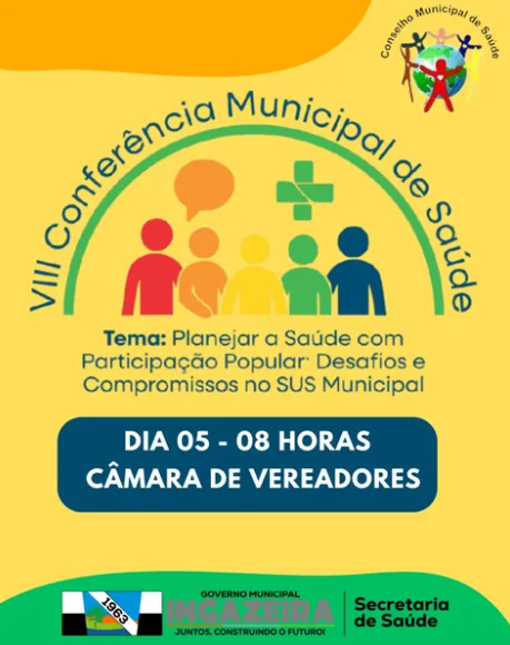 Conferência – A Secretaria Municipal de Saúde da Ingazeira, juntamente com o Conselho Municipal de Saúde, convidam toda a população ingazeirense para participar da VIII Conferência Municipal de Saúde, que será realizada no próximo dia 05 de agosto na Câmara de Vereadores. “Será um momento relevante para juntos construirmos as propostas que irão compor o Plano Municipal de Saúde 2026/2029”, disse a secretária Fabiana Torres.