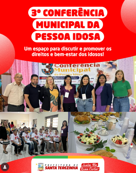 Conferência – A Prefeitura de Santa Terezinha, através da Secretaria de Políticas Sociais, realizou a 3ª Conferência Municipal da Pessoa Idosa, um momento marcante de diálogo, aprendizado e construção de políticas públicas mais humanas e inclusivas. O evento reuniu representantes, especialistas e a comunidade para discutir os direitos, desafios e sonhos da melhor idade!