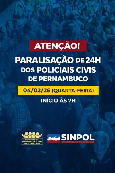 Paralisação – Os policiais civis de Pernambuco anunciaram uma paralisação de 24 horas a partir das 7h desta quarta-feira (4), após, segundo as entidades representativas, não haver avanços em tentativas de diálogo com o Governo do Estado. O movimento, convocado pelo Sindicato dos Policiais Civis de Pernambuco (Sinpol) e pelo Movimento pela Valorização dos Policiais Civis, aponta que as reivindicações estão relacionadas à valorização profissional, às condições de trabalho e à política salarial, e têm como objetivo chamar a atenção da sociedade e do poder público para as demandas da categoria.