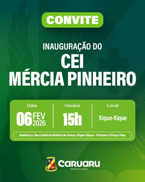 Entrega – A Prefeitura de Caruaru, através da Secretaria Municipal de Educação e Esportes, em parceria com o Governo de Pernambuco, entrega do novo Centro de Educação Infantil (CEI) Mércia Pinheiro, nesta sexta-feira (6), às 15h, no bairro Xique-Xique.