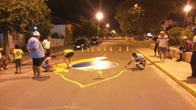 Ornamentando – O artista Edgley Brito, começou na noite de ontem (09), juntamente com alguns moradores da Av. Rio Branco em Afogados da Ingazeira, ornamentar a avenida para a Copa do Mundo.