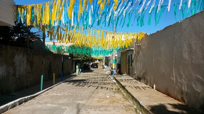 Ornamentada – Moradores da Travessa Francisco Guimarães em Afogados da Ingazeira, já entraram no ritmo da Copa e do São João, deixaram a travessa totalmente ornamentada.