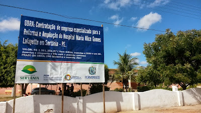 Após 50 anos – Depois de 50 anos, a Prefeitura de Sertânia, está realiza a reforma do Hospital Maria Alice Gomes Lafayette, que encontra-se em ritmo acelerado, a Empresa Praxedes Construção e Serviços é quem está responsável pelos serviços, no Projeto de reforma serão utilizados recursos do Fundo de Apoio ao Desenvolvimento Municipal (FEM), no montante de R$ 1.334.015,23.