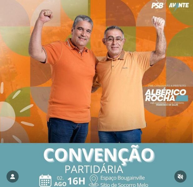Convenção – A Coligação PSB-Avante de Iguaracy realizou na última sexta-feira (02), sua convenção partidária no Espaço Bougainville (Sítio de Socorro Melo), em Iguaracy. Foram oficializadas as candidaturas de Albérico Rocha para prefeito e Francisco de Sales para vice-prefeito. Além das candidaturas majoritárias, foram homologados nove candidatos a vereador, sendo seis homens e três mulheres, todos do Avante. Em seu discurso, Albérico Rocha enfatizou a importância de melhorar a infraestrutura rural, especialmente no acesso à água. “O homem do campo precisa de muita coisa, mas tem algo essencial: água. Sem água, não tem vida, não tem como o agricultor se manter na zona rural.“Eu quero fazer uma campanha de propostas, discutir e comparar. O candidato do lado de lá já foi prefeito, eu também fui. Quero comparar a gestão dele com a minha.”