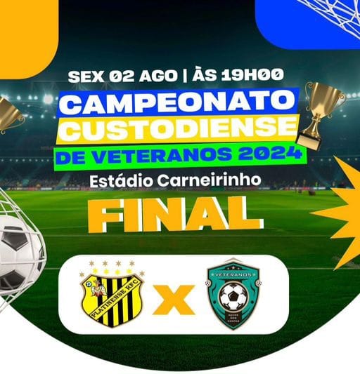 Final – Acontece nesta sexta-feira (02), a grande final do Campeonato Custodiense de Veteranos 2024, no Estádio Carneirinho, às 19 horas, entre o Platinense (Custódia) x Açude dos Costas (Zona Rural), com uma premiação de R$ 3.000,00 para o campeão, R$ 1.500,00 para o vice-campeão.