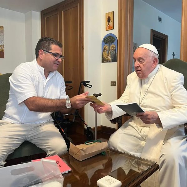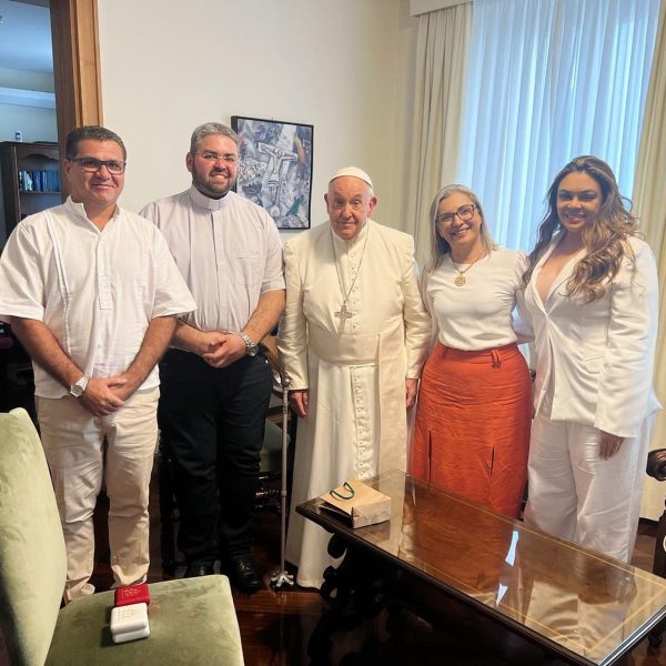 Com o Papa – Ontem o afogadense Alexsandro Acioly, teve a oportunidade única de ser recebido pelo Papa Francisco em sua residência no Vaticano, na companhia da sua esposa Maria Elenice, sua filha Mariana Ataíde e o vigário e filho da Elenice, Mateus Henrique . Na oportunidade Leca como é conhecido, teve o prazer de presenteá-lo com um livro seu que é uma transcrição do livro, Drama do Ódio do também Afogadense, Manoel Arão, escrito por ele em 1900, também entregou nas mãos de Francisco, o seu cordel intitulado, “Um Cordel de Lembranças. “A felicidade é sem fim e será um momento inesquecível. Desígnios de Deus e muito obrigado o vigário Matheus Henrique por me proporcionar este momento”, escreveu Leca, na sua rede social.