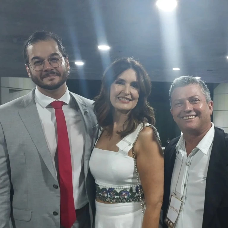 Foto da diploamação dos candidato eleitos em Pernambuco nas eleições de 2022, no Centro de Convenções de Olinda, em janeiro de 2023, com o deputado federal, releito para seu segundo mandato Túlio Gadelha e sua namorada a jornalista e apresentadora de televisão Fátima Bernardes. Foto dos arquivos deste blogueiro.