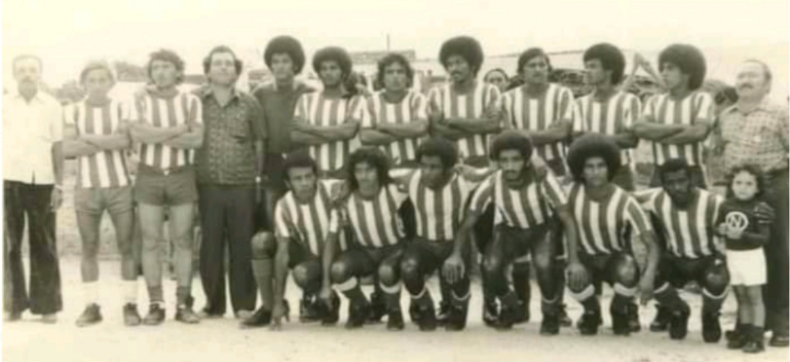 Foto da equipe do Nacional FC da cidade de Tabira-PE, nos anos 70. Da esquerda para direita, em pé: Aristeu Teixeira, dois não edentificado, Professor João Veiga, dois não identificado, Lula Bocão, Quixadá, Zé de Vá, Holanda e Jola. Agachados: Beto Massagista, Chico Machado, Brás,Edmilson Barbudo, Sulipa e Pipoca. Foto enviada por Hominho e com a colaboração de Aldo Pires. Se você tem uma foto antiga, e quer publicar no FOTO É HISTÓRIA, envie para o email: finfa@blogdofinfa.com.br ou para WhatsApp (81) 996530059, que publicaremos.