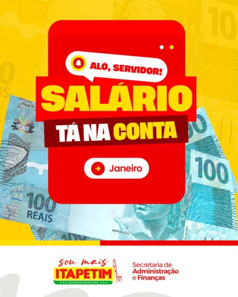 A Prefeitura de Itapetim (PE) realizou nesta sexta-feira (30) o pagamento referente ao mês de janeiro dos servidores municipais, incluindo servidores ativos, aposentados, pensionistas, membros do Conselho Tutelar e equipe de limpeza urbana. O repasse ocorre dentro do calendário estabelecido pelo município.