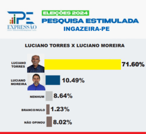 A surpresa foi a inclusão do nome do filho de Luciano, Miguel Duque, que até então não tinha seu nome posto na disputa eleitoral. Ele aparece com 18,3%. Se fosse ele o candidato, a prefeita venceria com 51,9% dos votos.