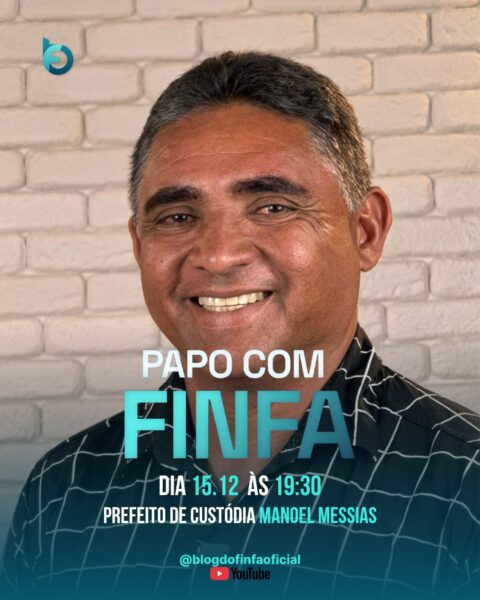 Nesta segunda-feira 15 de dezembro o convidado do Podcast ‘Papo com Finfa’, será o prefeito de Custódia Manoel Messias. O Papo com Finfa será às 19:30 horas, transmitido pelo YouTube do blog, @blogdofinfaoficial