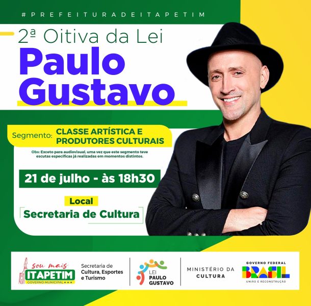 O Governo Municipal de Itapetim, por meio da Secretaria de Cultura, Esportes e Turismo, realiza nesta sexta-feira, dia 21 de julho, um encontro com artistas, produtores (as) e fazedores (as) da cultura do Município, que atuam em todas as áreas da cultura.