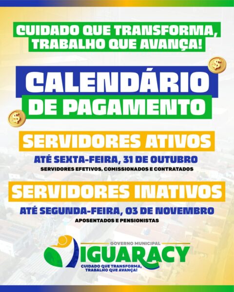 A Prefeitura de Iguaracy segue valorizando o servidor público e mantendo o compromisso com a responsabilidade fiscal. Nesta sexta-feira, 31 de outubro de 2025, o governo municipal realizou o pagamento dos servidores ativos, incluindo efetivos, comissionados e contratados.