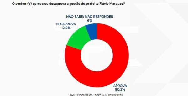 Uma nova pesquisa de opinião pública realizada pelo Instituto Expressão revelou que a gestão do prefeito Flávio Marques conta com expressiva aprovação da população tabirense.
