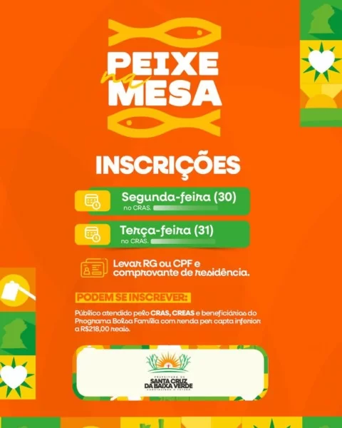 A Prefeitura de Santa Cruz da Baixa Verde, por meio da assistência social do município, realiza mais uma edição da ação “Peixe na Mesa”, garantindo o peixe da Semana Santa a famílias em situação de vulnerabilidade social.