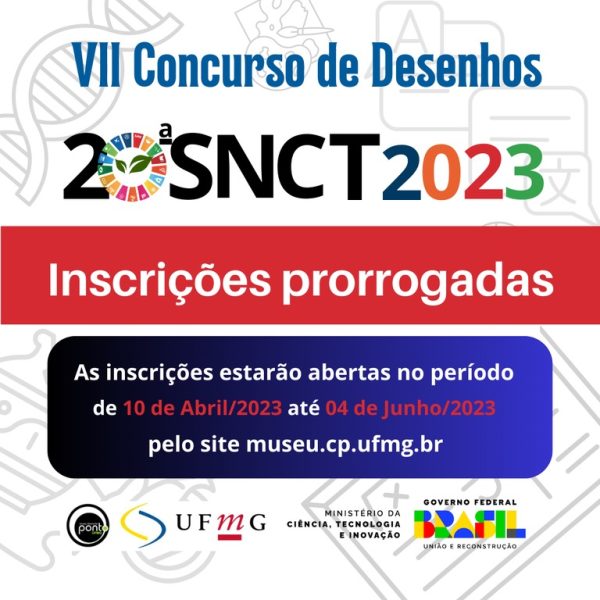 O prazo para as inscrições no 7º Concurso de Desenho da Semana Nacional de Ciência e Tecnologia foi prorrogado para o dia 4 de junho. Com o tema “Ciências Básicas para o Desenvolvimento Sustentável”, o concurso vai definir a identidade visual da 21ª Semana Nacional, que será realizada de 14 a 20 de outubro em todo o país. O concurso é promovido pelo Ministério da Ciência, Tecnologia e Inovação (MCTI) em parceria com a Universidade Federal de Minas Gerais, por meio do Museu Ponto.