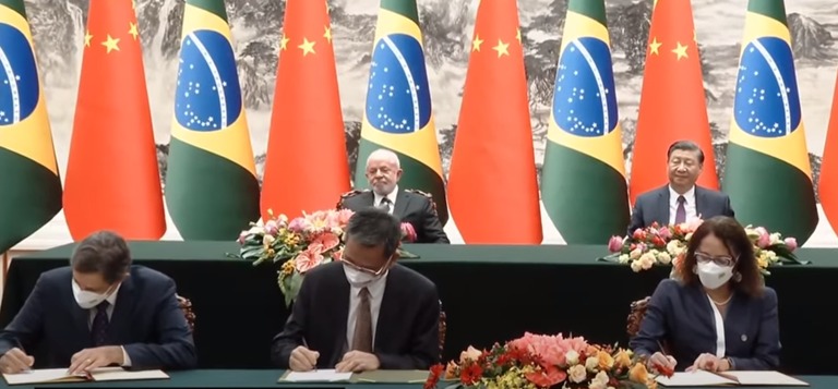 A ministra da Ciência, Tecnologia e Inovação, Luciana Santos, assinou, na última quinta-feira (14), em Pequim, um acordo com o governo chinês para o desenvolvimento conjunto do satélite CBERS-6, além de dois memorandos sobre cooperação em pesquisa e inovação e sobre cooperação em Tecnologias da Informação e Comunicação. Também foi firmado um plano de cooperação espacial entre Agência Espacial Brasileira e a Administração Espacial Nacional da China. A ministra integra a comitiva do presidente Luiz Inácio Lula da Silva, que cumpre agenda oficial no país asiático desde 13 de abril.