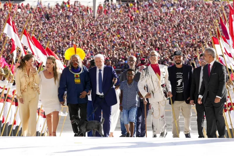 Luiz Inácio Lula da Silva tomou posse neste domingo (1º) como o 39º presidente da história do país. A celebração do início do mandato levou centenas de milhares de apoiadores à Esplanada dos Ministérios, em Brasília. Em um dos momentos mais marcantes, Lula recebeu a faixa presidencial de pessoas comuns, representantes do povo brasileiro.