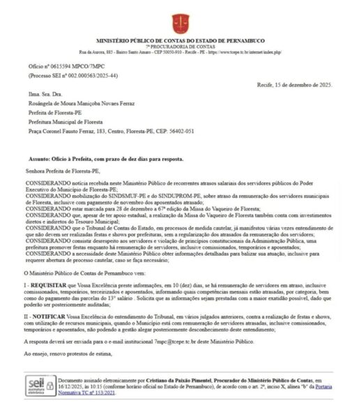 Aprovada – A prefeita de Sertânia, Pollyanna Abreu, está concluindo o primeiro ano de sua gestão com 73% de aprovação popular, segundo levantamento divulgado pelo Instituto Múltipla. O resultado reflete a avaliação positiva da população em relação às ações implementadas ao longo do primeiro ano de governo e aponta um cenário de confiança na administração municipal. De acordo com os dados da pesquisa, o índice expressivo de aprovação indica que Sertânia vive um novo tempo, marcado por avanços na gestão pública e maior proximidade entre o governo municipal e a população.