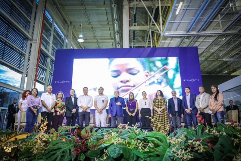 Um dia após o governo federal anunciar os incentivos para o setor automotivo, a governadora Raquel Lyra acompanhou o presidente Luiz Inácio Lula da Silva na visita ao Polo Automotivo Stellantis, em Goiana, nesta terça-feira (6). Os gestores percorreram áreas da indústria e conheceram o quinto modelo a ser fabricado pela companhia em Pernambuco, a Ram Rampage. O momento representou o início da produção comercial do novo veículo, que será lançado ainda este mês.