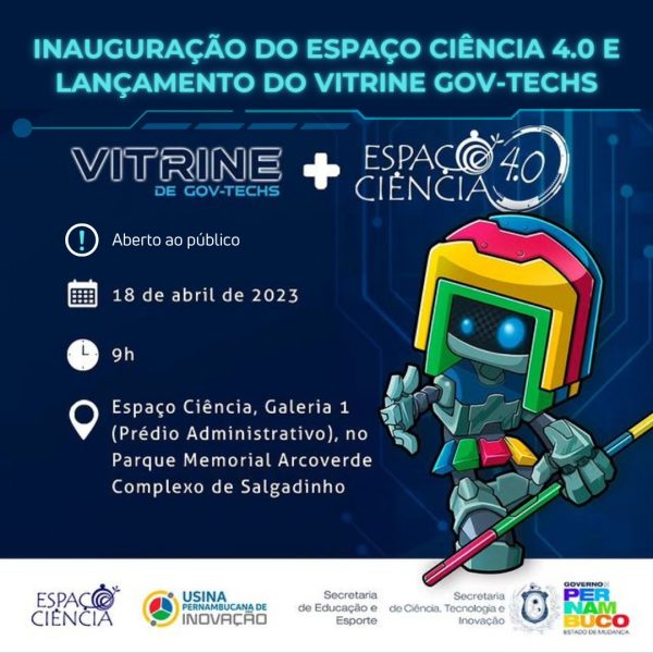 Cria – A Secretaria de Ciência, Tecnologia e Inovação de Pernambuco (Secti/PE) cria no Espaço Ciência um ambiente para exposições de novas tecnologias convergentes e habilitadoras. Chamado de Espaço Ciência 4.0, o ambiente vai disponibilizar equipamentos makers e de robótica, como controladores, sensores e simuladores, além de experimentos de inteligência artificial e outros. O intuito é que os visitantes do Museu possam se familiarizar com as diferentes inovações desenvolvidas no Estado. O laboratório será inaugurado no próximo dia 18 de abril, às 9h, na Galeria 1 do Espaço Ciência.
