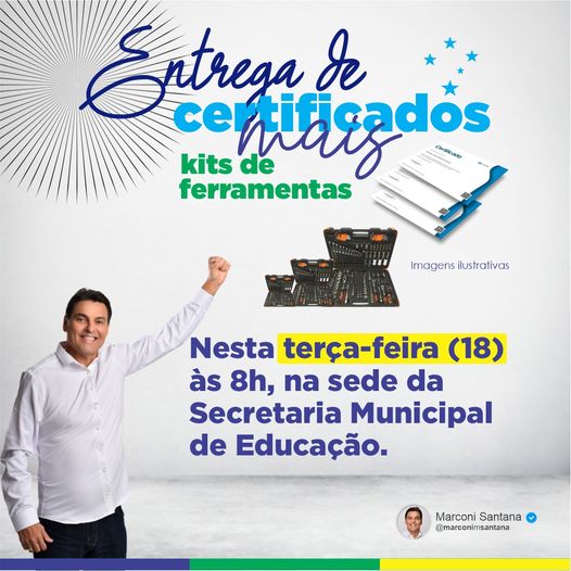 Entregando – Nesta terça-feira (18), o prefeito de Flores, Marconi Santana, estará na sede da Secretaria de educação, realizando a entrega dos certificados, e kit de ferramentas para os alunos que concluíram o curso de qualificação profissional de manutenção de motor de moto.