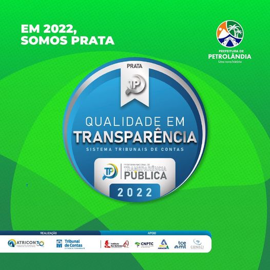 Prata – O município de Petrolândia, foi classificado como Prata, na avaliação realizada pela Associação dos Tribunais de Contas do Brasil (Atricon) e o Tribunal de Contas do Estado de Pernambuco. O prefeito Fabiano Marques, afirmou que o resultado demonstra que Petrolândia segue avançando, aprimorando a transparência do município para os cidadãos.