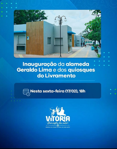 Inaugura – O prefeito Paulo Roberto, da Vitória de Santo Antão, inaugura nesta sexta-feira (17), às 17 horas, a Alameda Geraldo Lima, novo espaço gastronômico no bairro do Livramento, com novos quiosques para quem frequenta o bairro. Paulo Roberto em seguida, participa do Baile Municipal na Estação do Frevo.