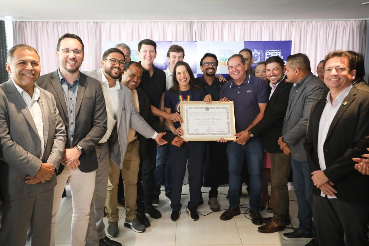 *Honraria* — A governadora Raquel Lyra recebeu, ainda, o título de cidadã petrolinense e a Medalha de Honra ao Mérito Dom Malan — uma das maiores honrarias do município de Petrolina — em reconhecimento aos investimentos aportados e às ações realizadas que vêm contribuindo para o desenvolvimento da cidade.