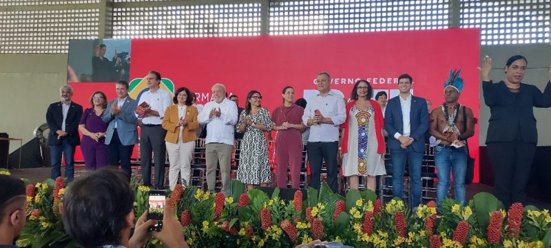 O Presidente Lula acabou de subir ao palco, sendo ovacionado pelo os presentes. Fotos: Finfa