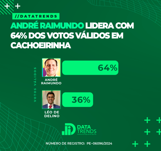 Pesquisa do Instituto DataTrends divulgada nesta madrugada desta segunda-feira (19/08) mostra o candidato André Raimundo liderando a disputa pela eleição da Prefeitura de Cachoeirinha.