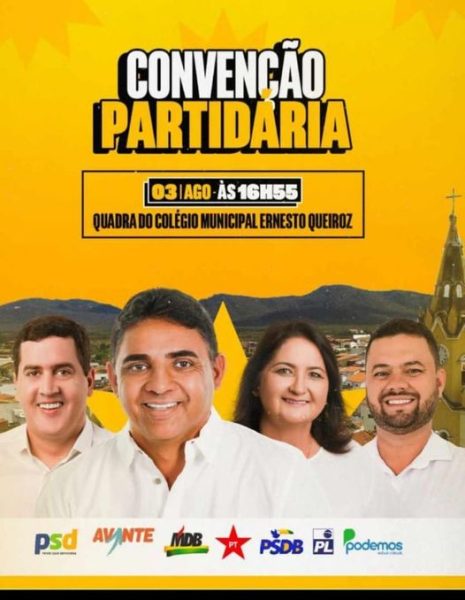 Este blogueiro foi informado agora, que a Convenção da Frente Popular de Afogados da Ingazeira será no próximo dia 05 de agosto, no Cine São José, a partir das 16 horas, da chapa Sandrinho Palmeira (prefeito) Daniel Valadares (vice-prefeito) e vereadores.