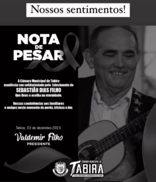 O velório do poeta Sebastião Dias acontecerá no Centro Lítero Cultural Poeta José de Mariano, situado na Rua Amâncio Siqueira, nº 08, centro de Tabira. O sepultamento está previsto para às 16 horas desta segunda-feira, 04 de dezembro, no cemitério Parque da Saudade, logo após as homenagens póstumas na Sede do Poder Executivo e na Câmara Municipal de Vereadores.