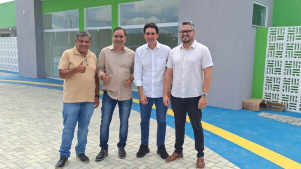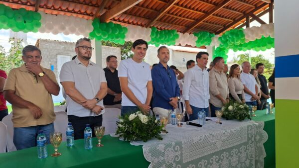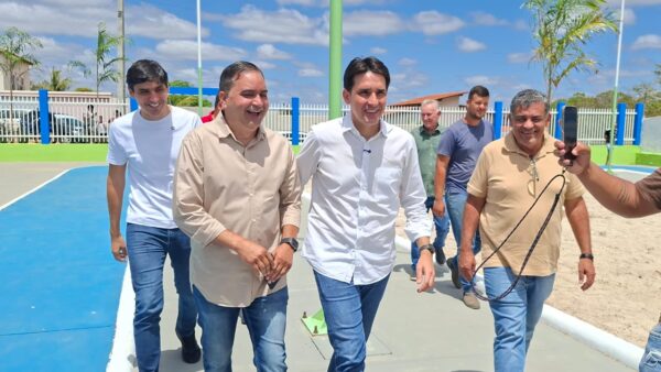 O ministro dos Portos e Aeroportos, Silvio Costa Filho, acabou de chegar ao povoado de Lagoinha, que juntamente com o prefeito de Brejinho, Gilson Bento, que inauguram a Academia da Saúde.